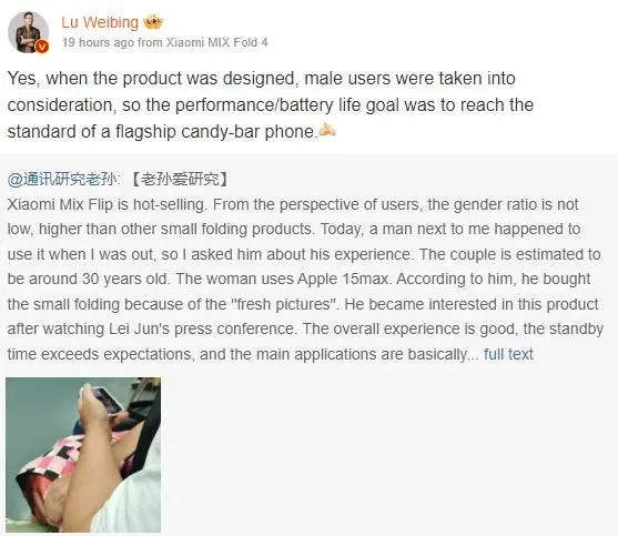 The MIX Flip is unique in the market not just because of its elegant appearance but also because of its emphasis on battery life and performance. Lu Weibing, President of Xiaomi Group, claims that men were the MIX Flip's primary target market. Because of this, Xiaomi made sure that the MIX Flip offers a well-balanced combination of power and durability, matching the requirements of a flagship candy-bar phone.