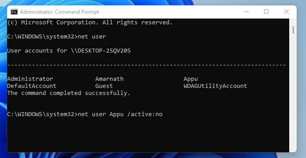 In this method, we will use the Command Prompt utility to disable the user account. Here are some simple steps that you should follow.