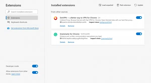 You can remove an extension from the browser with the click of a button, all you have to do is go to the extensions page like we said above and then search for the word Remove next to the word Details and click on it, the browser will ask you to confirm your choice and then you will remove the extension from the new Edge browser.